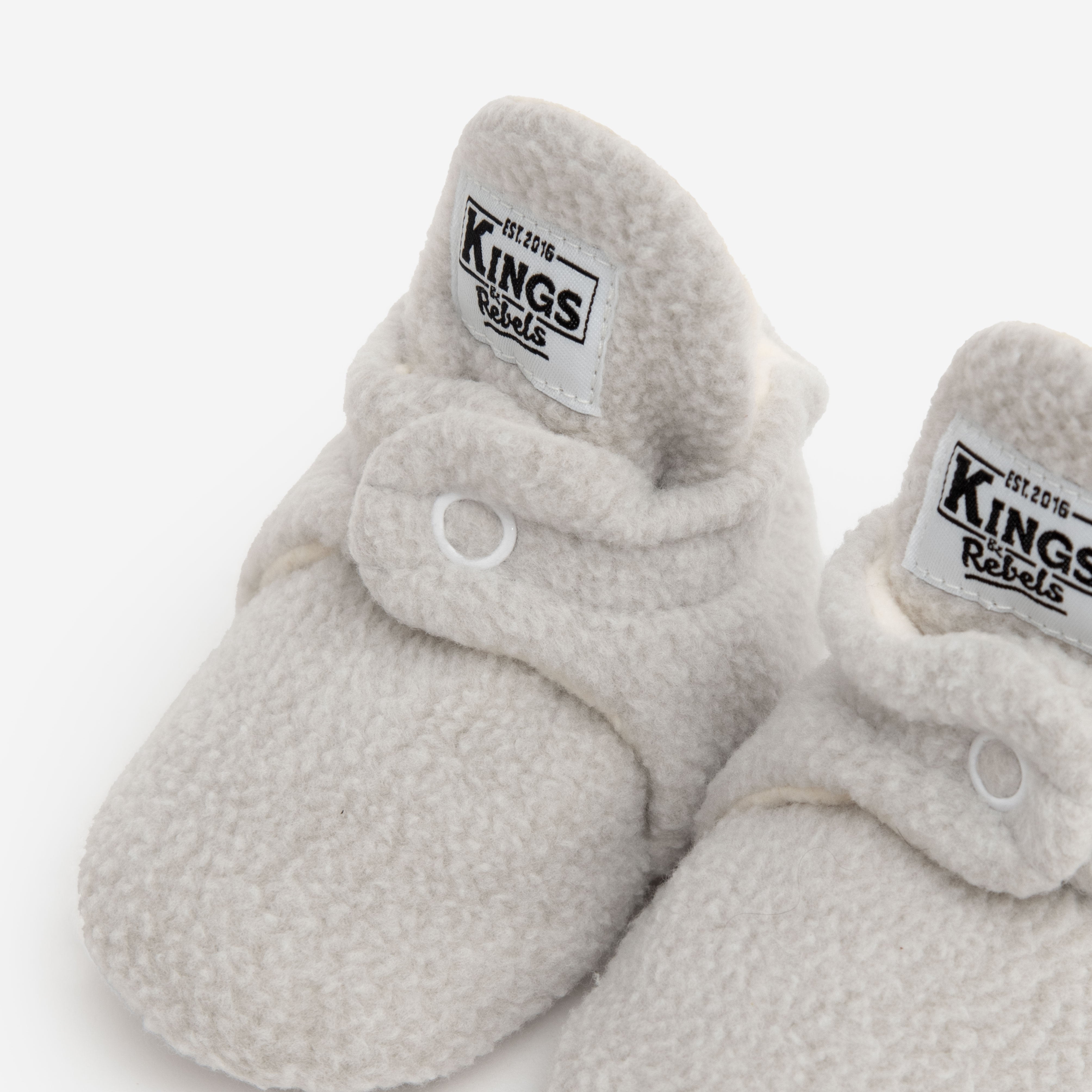 The Kings & Rebels baby bootie is designed with a simple and convenient snap button system to make it easy to dress your little one.